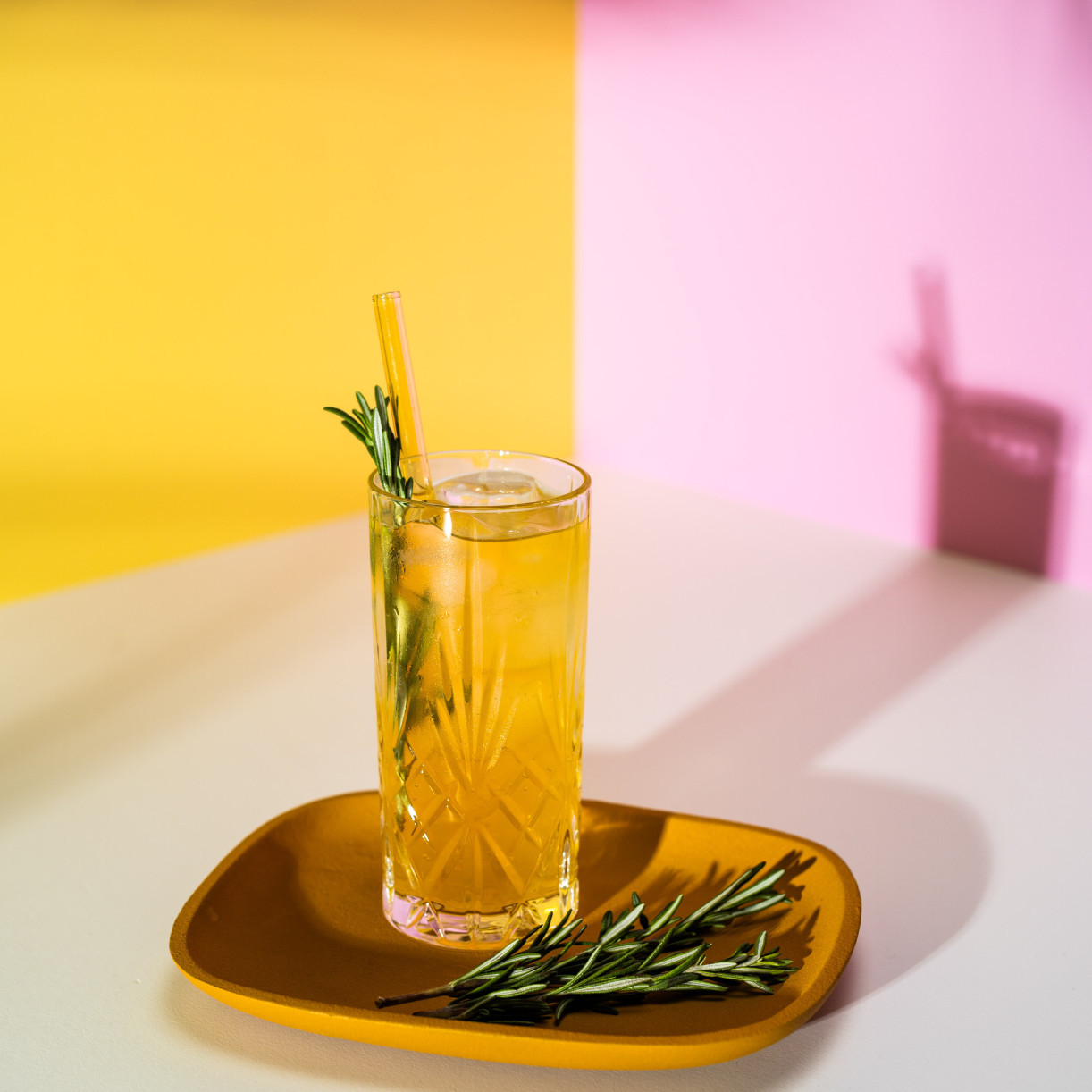 Zubereitung: Fülle ein Longdrinkglas mit Eis. Gib Trojka Sun hinzu und fülle das Glas mit Mineralwasser auf. Zum Schluss garnierst du deinen 3 Zutaten Drink mit einem frischen Rosmarinzweig. Fertig!