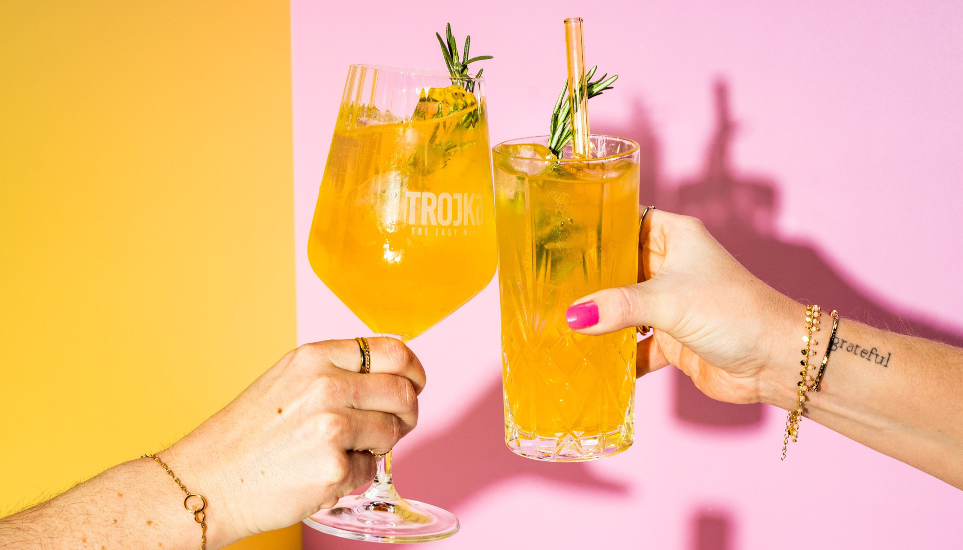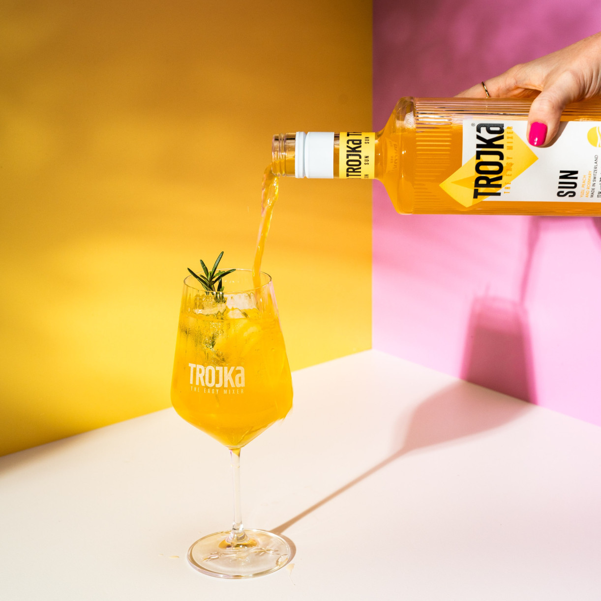 Mit Trojka gelingen dir nicht nur schnelle Cocktails, sondern kommen auch viele sommerliche Farben ins Glas, die deine Freunde beeindrucken werden. Also: Eis bereitstellen, Trojka-Flaschen kühlen und den Sommer in vollen Zügen geniessen.