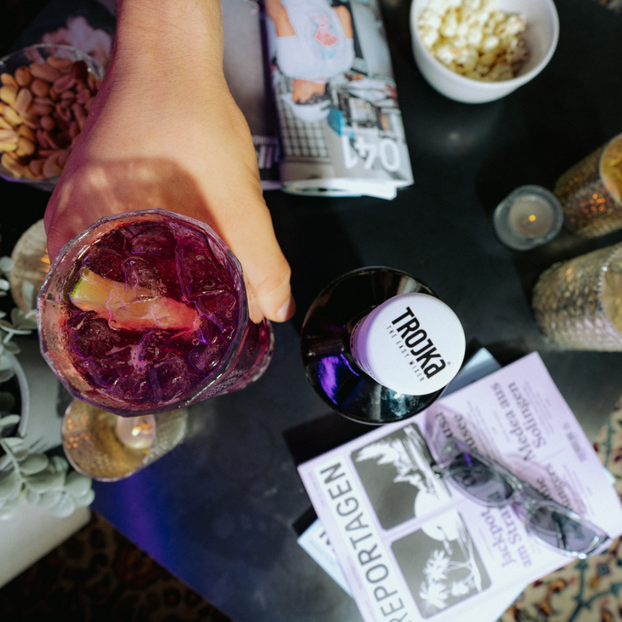 Lust auf eine neue Fizz-Variante? Dann mix den Drink doch mal mit Trojka Black, dem leckeren Waldbeerenlikör von Trojka.