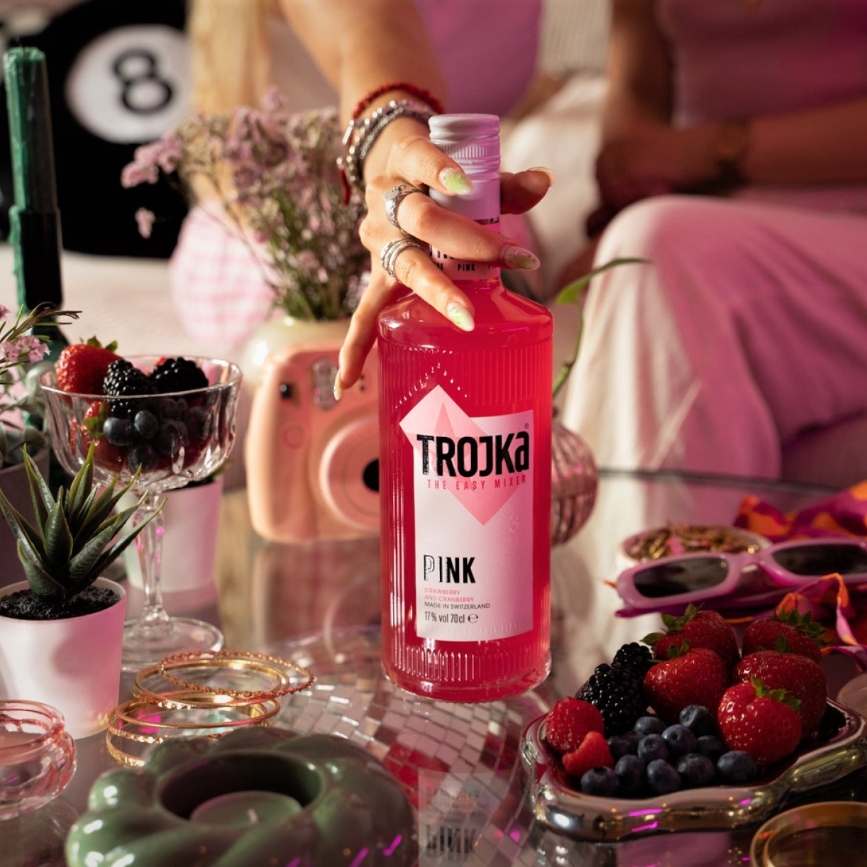 Der Pink Spritz mit Trojka Pink ist ein beeriger Aperitif-Drink, der wie ein klassischer Spritz zubereitet wird. Der leichte Geschmack von Trojka Pink mit den verschiedenen beerigen Noten eignet sich perfekt als Start in einen gemütlichen Sommerabend.