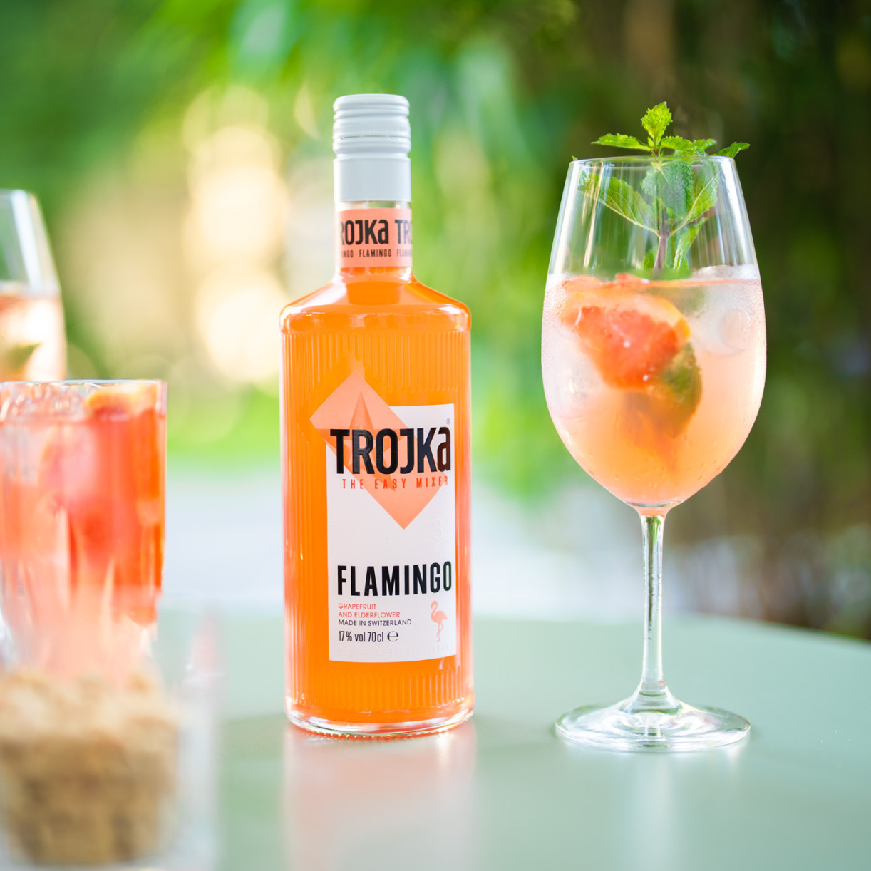 This drink will especially delight those who like to prepare more elaborate cocktails. That's because Flamingo Love features Trojka Flamingo mixed with a cordial that you yourself have to make.