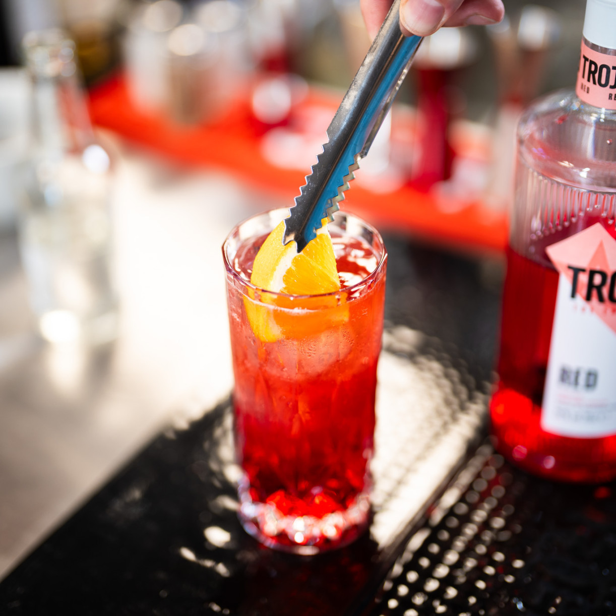 A fruity drink featuring various juices and Trojka Red – Red Fusion!