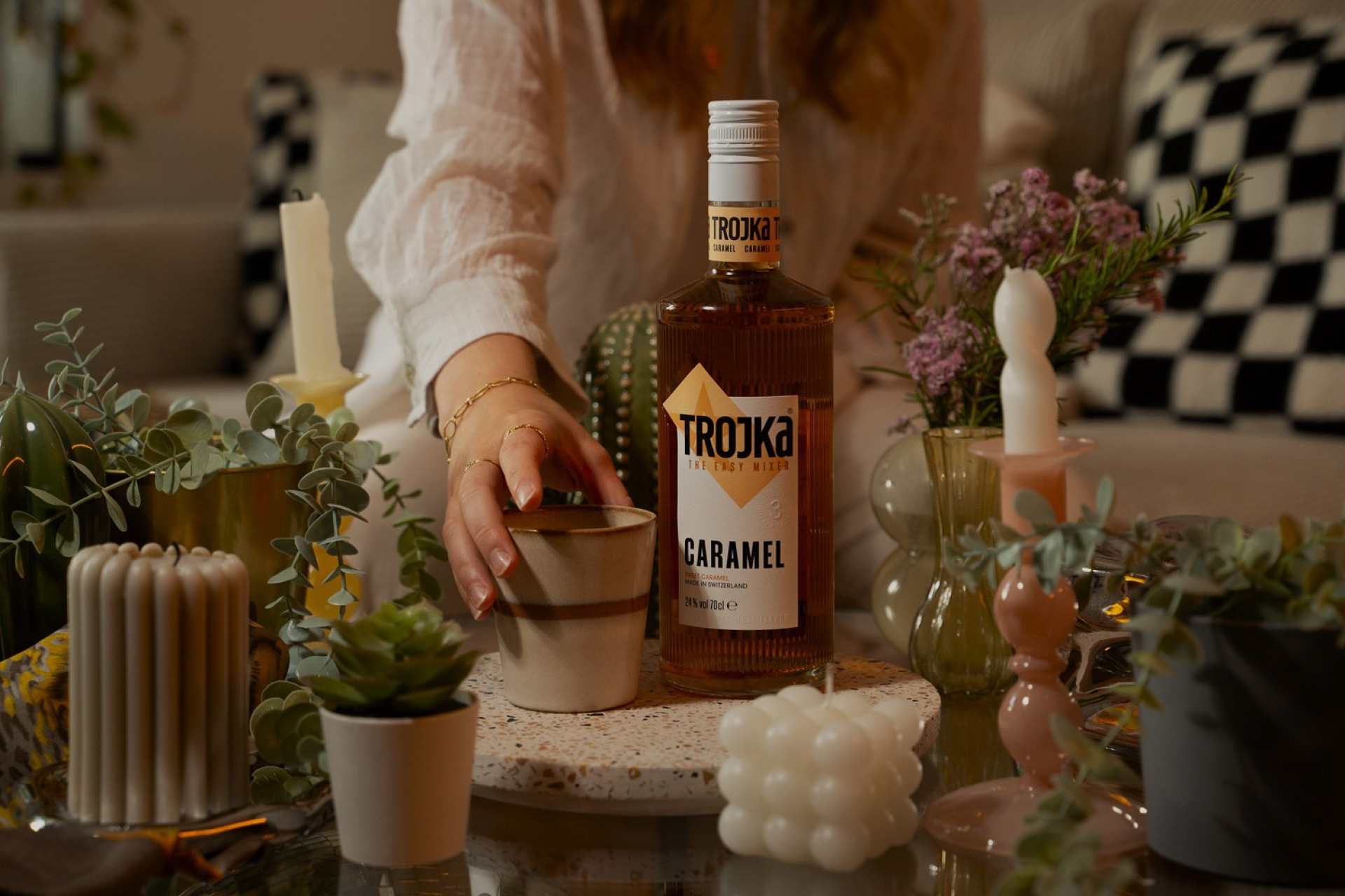 L’Easy Mixer doré de Trojka est un rêve pour tous ceux et celles qui rêvent de prendre un bain de caramel. L’arôme doux du caramel vient sublimer cette liqueur à base de Trojka Vodka. Le délicieux goût de caramel confère non seulement un petit plus à notre boisson chaude, mais il est aussi idéal pour des créations de drinks froids exceptionnelles comme le Caramel Coke.